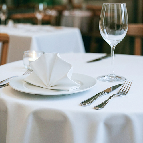 Table textiles need to look clean and consistent through repeated service, not just on the first use. Our wholesale table linen is made in Pakistan for hotels, restaurants and event venues that require table cloths and napkins that wash, finish and present reliably. The range is built around wholesale table cloths for everyday dining tables as well as larger banquet and conference layouts. Matching wholesale napkin lines complete place settings and make it easier to keep presentation uniform across rooms and events. Many hospitality groups manage supply through ongoing bulk table linens programs so the same look is maintained across sites.